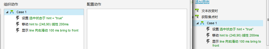 2、选中"input",添加用例"当获取焦点时,hint选中状态为Ture;hint200ms线性移到某个位置(我是直接移动到某个坐标的);且line向右滑动100s显示"。