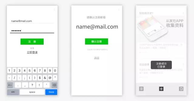 在网页端使用确认邮箱的方法比较常见,但是面对移动设备的输入压力,确认两次「登录身份」(信箱或者手机号码)的做法并不友善。