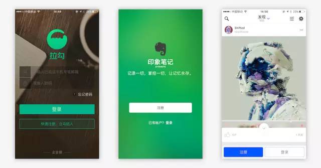 反例:印象笔记的「注册」与「登录」界面视觉区别度太低。