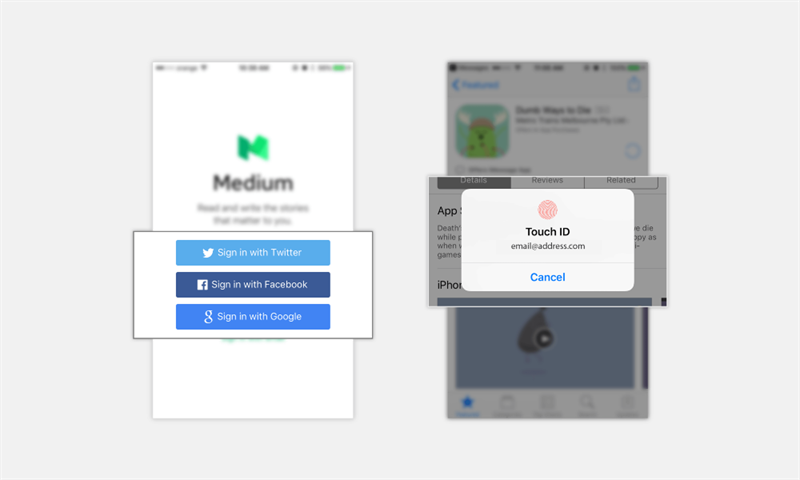 密码总是很麻烦,所以还有个办法是根本不用密码。要么使用外部验证手段,例如社交媒体账号登录,或者利用指纹识别。比如说,在App Store里购买一直都是用指纹的。