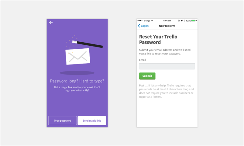 没人愿意重置密码,除非登录失败或者账号被盗。这么看来,如何帮助用户在不重置密码的情况下登录进去呢?发送一个短链接,允许用户不重置密码而直接登录。提示:利用好细微文案,但要和整体的语调保持一致。